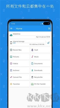 为 MobiDrive 上的任何文件提供 5GB 免费云存储空间。