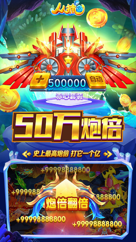 十倍、百倍、千倍炮任你发,无限子弹反弹,金币大丰收!