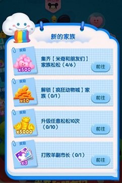 第二个任务是解锁疯狂动物城家族。解锁新的家族需要集齐一定量的星星,而星星也是要通过不断获得松松才可以获得的哦。不过相信在获得米奇家族的所有松松之后,解锁疯狂动物城家族星星也应该积攒的差不多了吧。